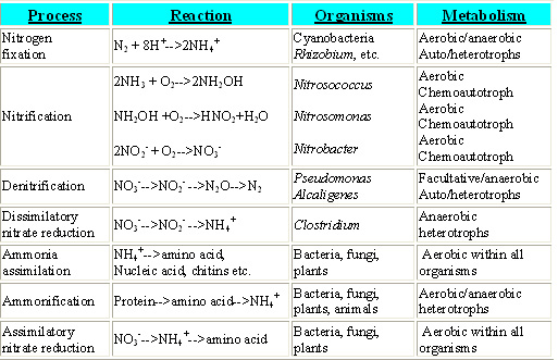 A reduction in concentrations of nitrogen compounds from these mine effluents can be achieved using natural biological processes. The nitrogen cycle is well documented and briefly summarized in TABLE 1.